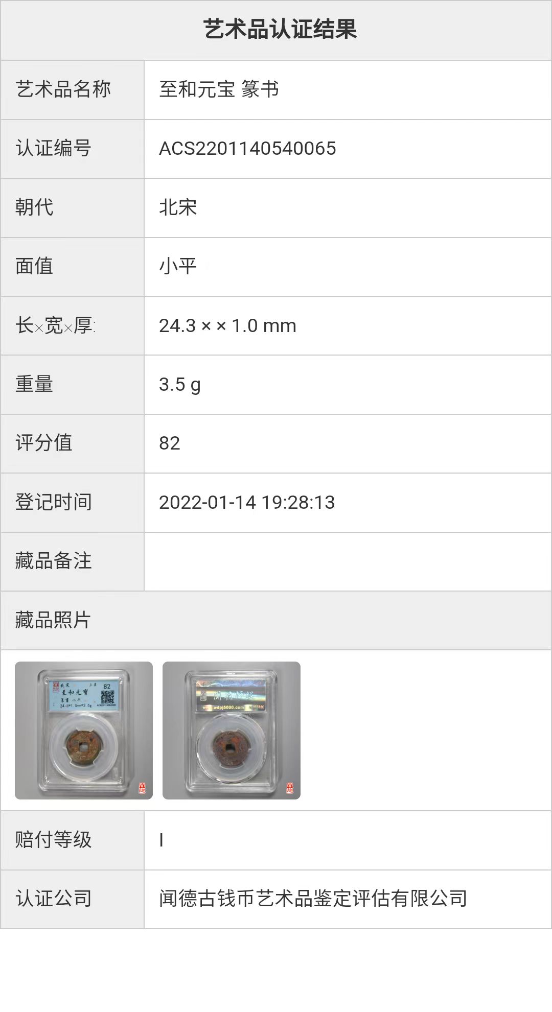 北宋至和元宝 - 南雅藏品商城CNEAC