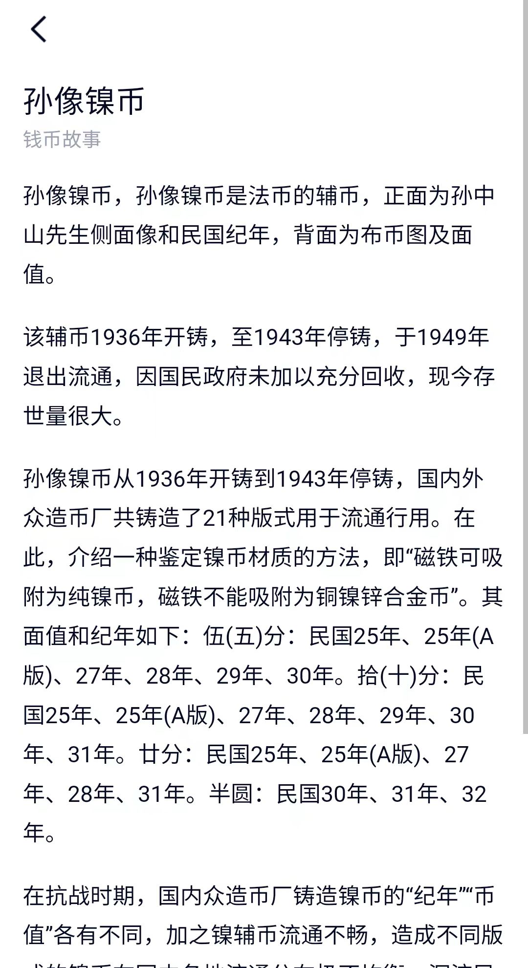 孙像镍币:1935年国民政府实行"法币政策",镍币作为辅币发行;
