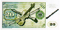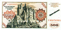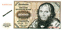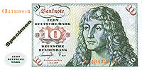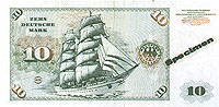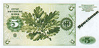 德国马克由德意志银行发行。1马克等于100芬尼(PFENNIG),目前,流通中的纸币有5、10、20、50、100、200、500和1000马克等面额,另有1、2、5马克及1、2、5、10、50芬尼的铸市。