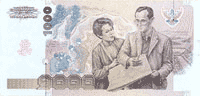 25、50萨当及1、5铢六种铸币。每种铸市的正面均铸有泰王“普密蓬。阿杜德”头像。